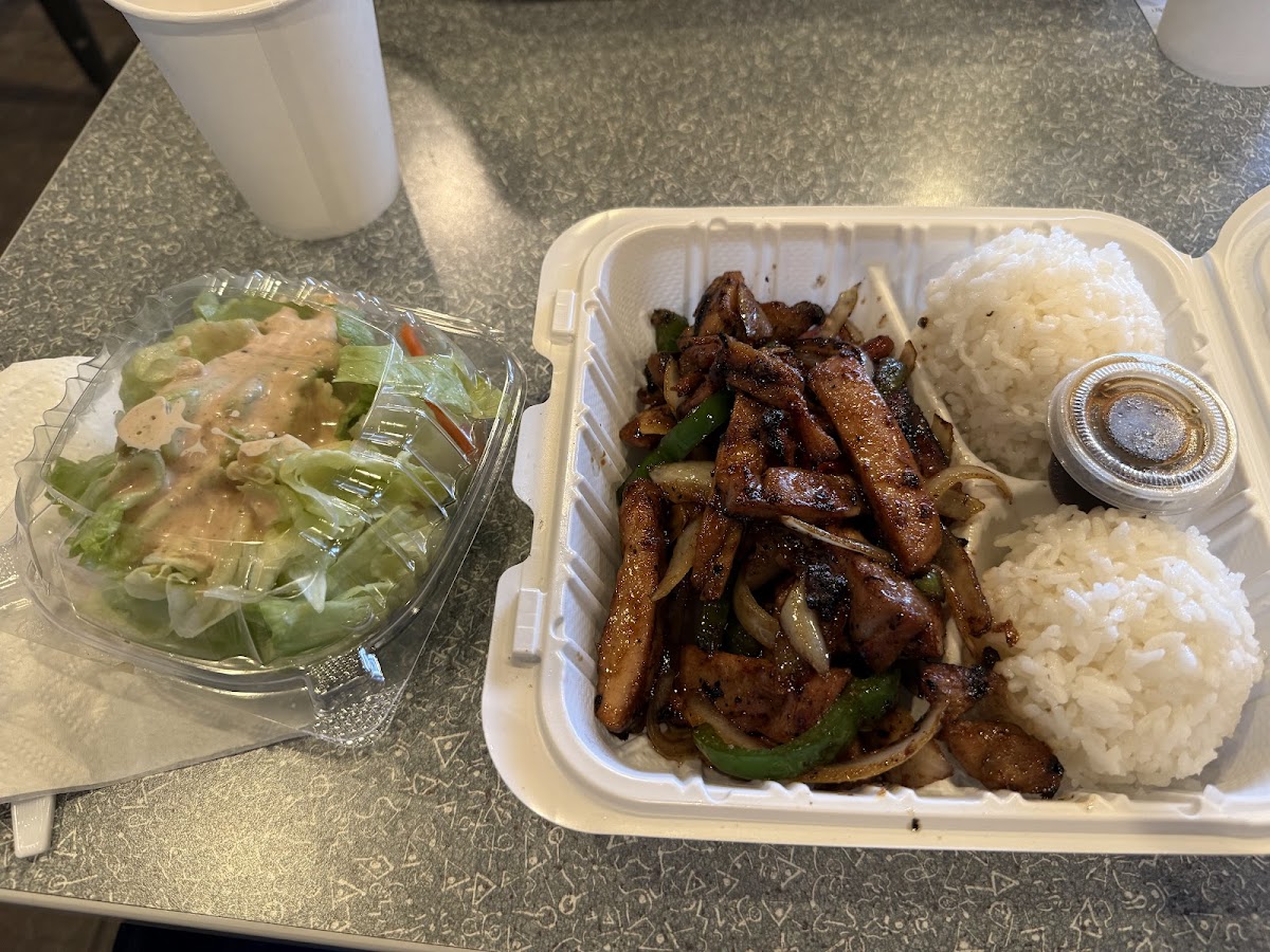 This has been the go-to place when hunger calls out for great teriyaki! We've been coming here for years for take-out. Friendly staff and quick service. The chicken is moist and flavorful, and with the perfect amount of sauce. The regular size has a hearty portion of chicken and rice. Served with a small side salad it's the perfect meal at a reasonable price.